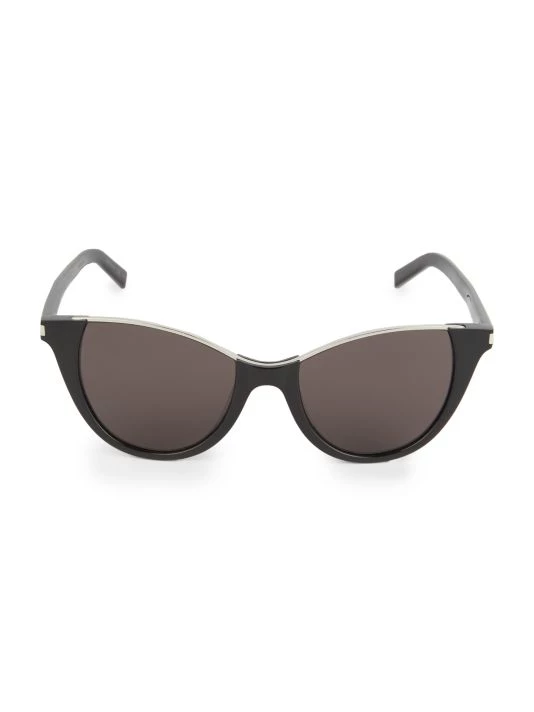 A contrasting top rim adds a dramatic finish to the sleek cat eye silhouette.