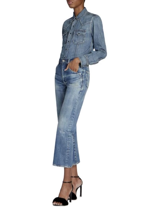 Retro-inspired jeans cut with a cropped fit are an effortless staple piece.