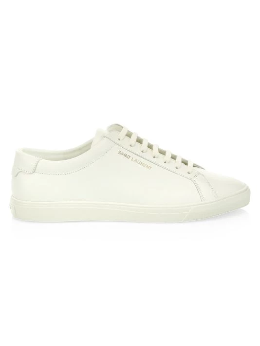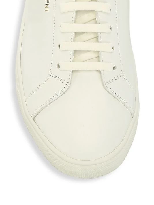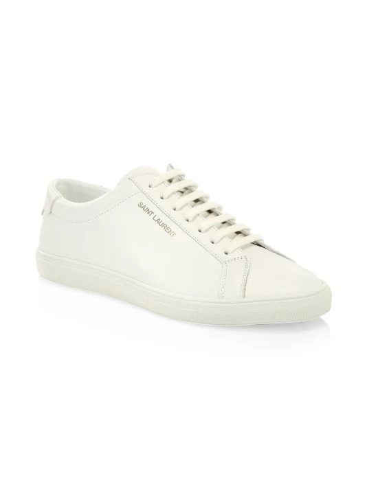 Sleek leather sneakers with elegantly understated logos on the side and heel.