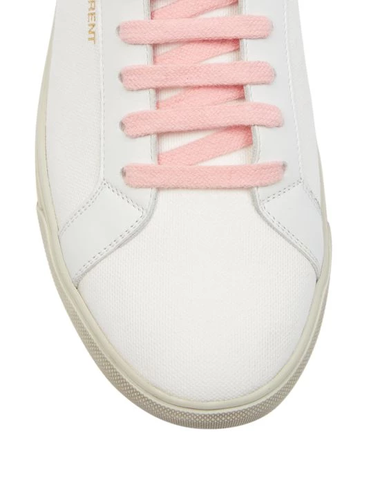 Lace-up sneakers made from a soft cotton with foil printed logo at the side and a worn-in look at the sole.
