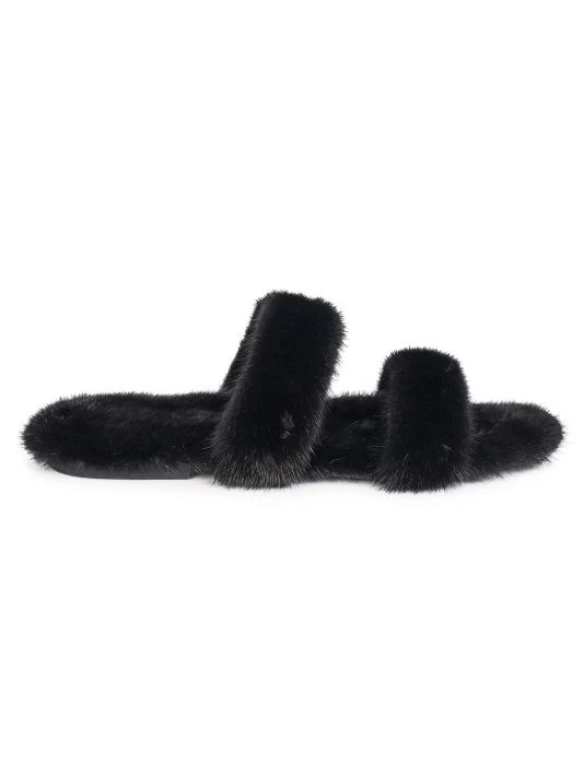 Classic open-toe slides elevated with by a luxe mink fur fabrication.