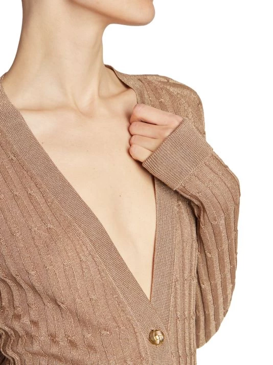 Crafted of a luxurious silk blend, this V-neck cardigan from Saint Laurent features goldtone buttons and a cable-knit design.
