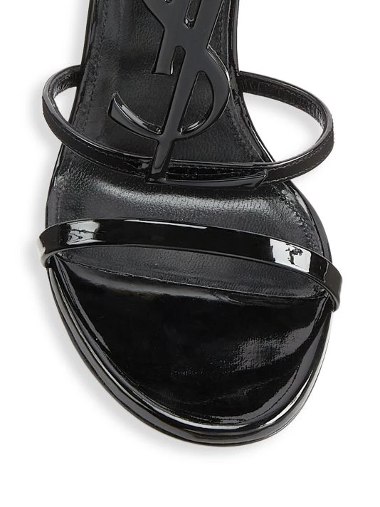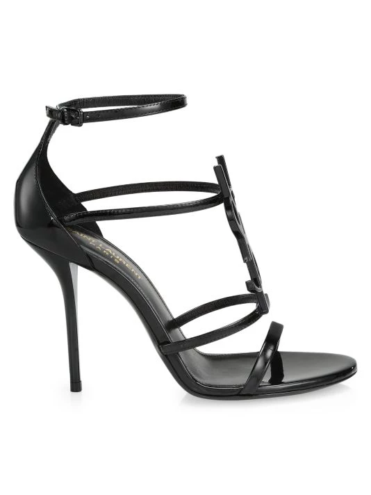 Strappy stilettos in rich leather adorned with iconic Saint Laurent monogram.