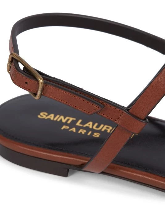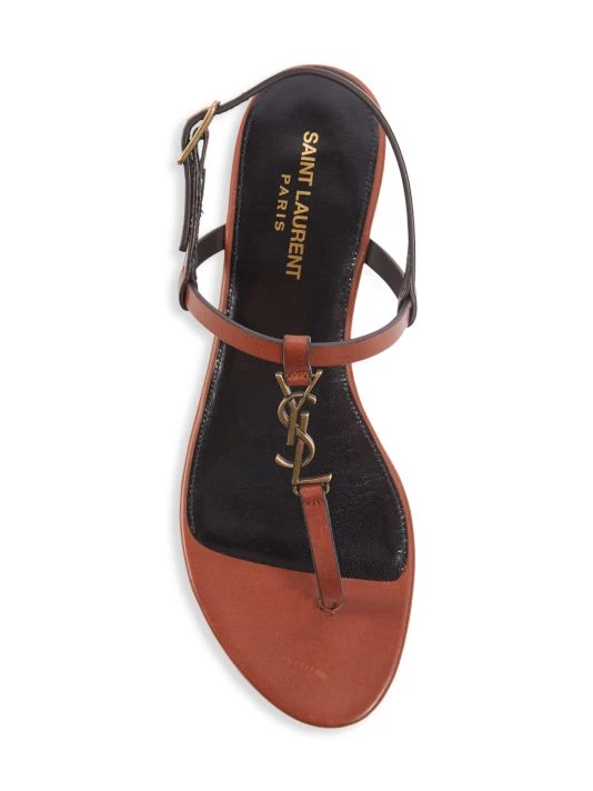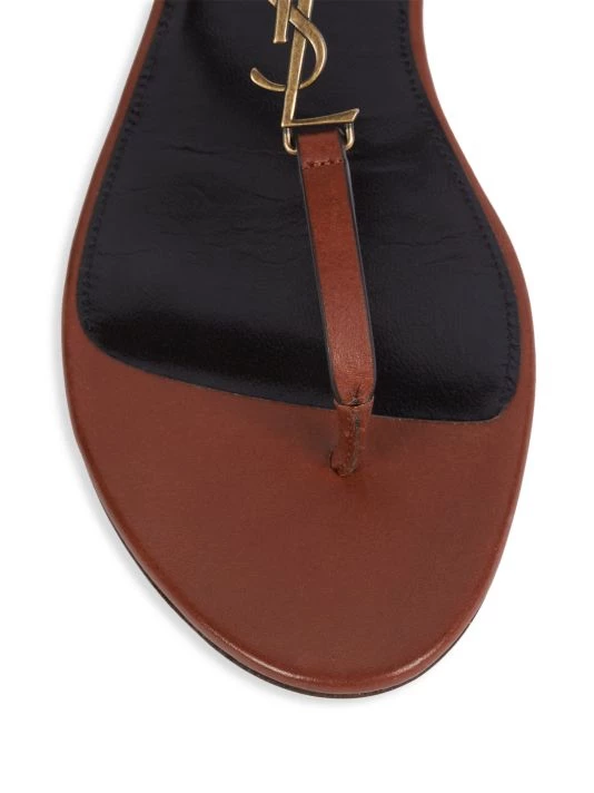 Strappy flat thongs flaunt petite goldtone monogram hardware in a timeless leather finish.