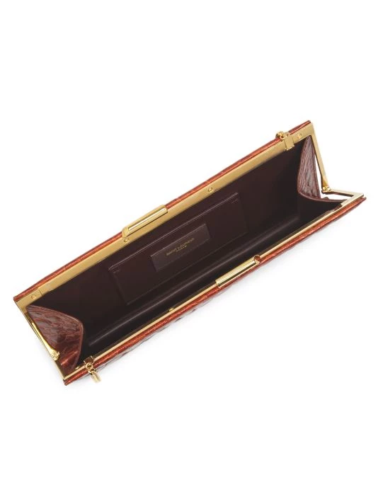 Crafted of croc-embossed leather, Saint Laurent’s clutch includes a goldtone chain-link shoulder strap.