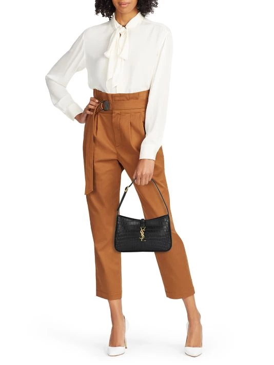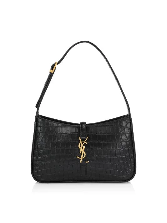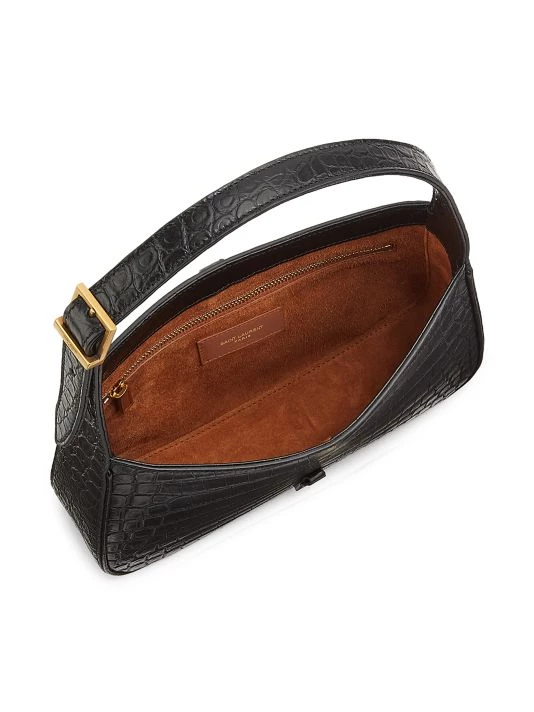 Croc embossing elevated this leather shoulder bag with goldtone logo hardware.