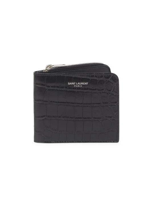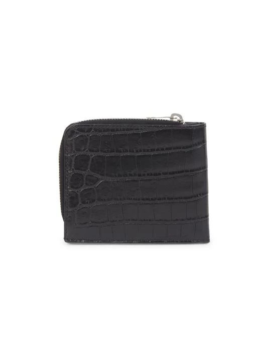 This luxurious croc embossed leather bi-fold wallet has a zippered pocket.