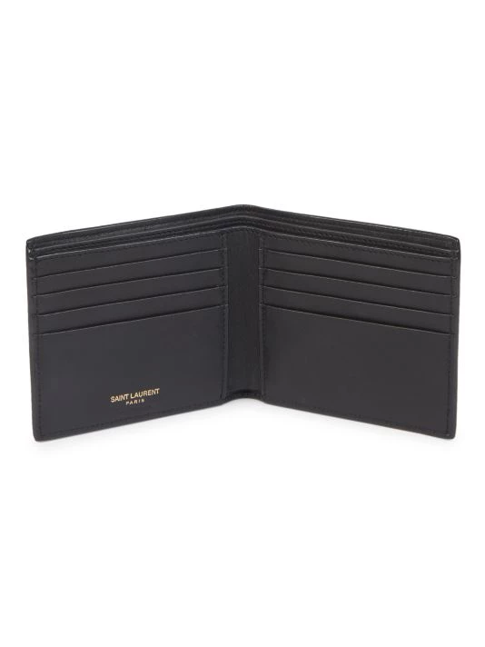 Signature styling and logo trim elevate croc-embossed leather wallet.
