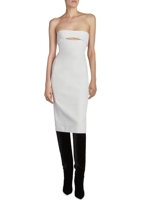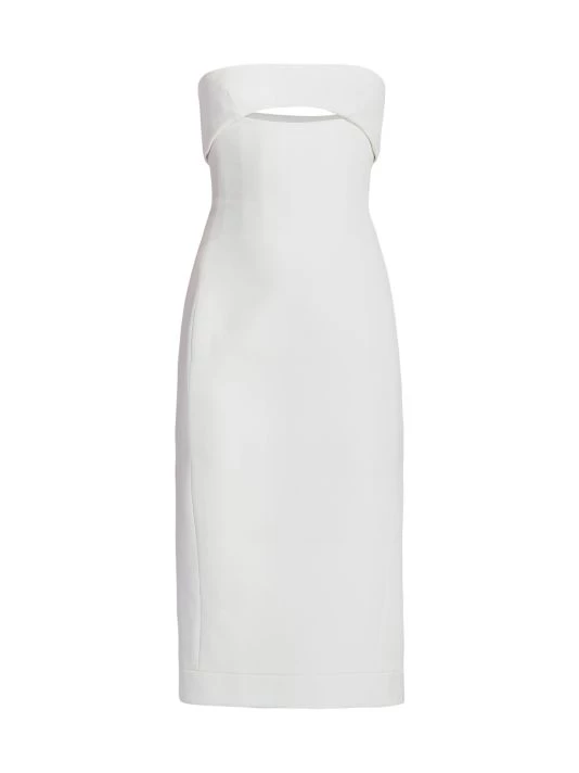 This fitted midi dress is accented with cut-outs at the center front and back.
