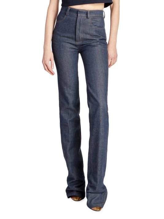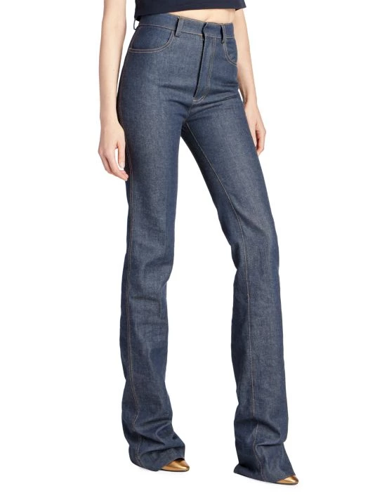 These high-waisted bootcut pants are finished with contrast topstitching.
