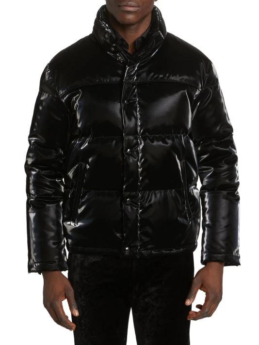Designed with a glossy finish, Saint Laurent’s oversized Doudoune puffer jacket features quilted panels for shape.