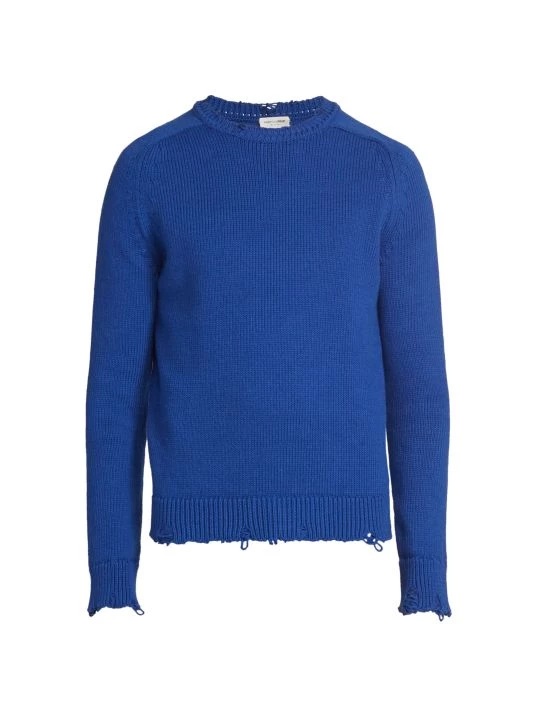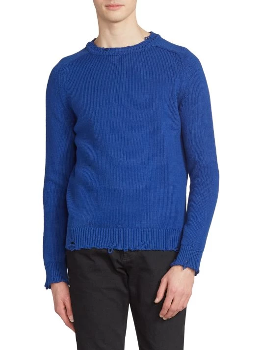 Subtle distressing adds cool to this slim knit cotton sweater.