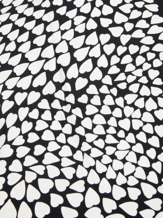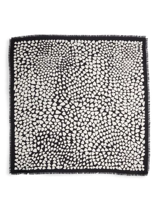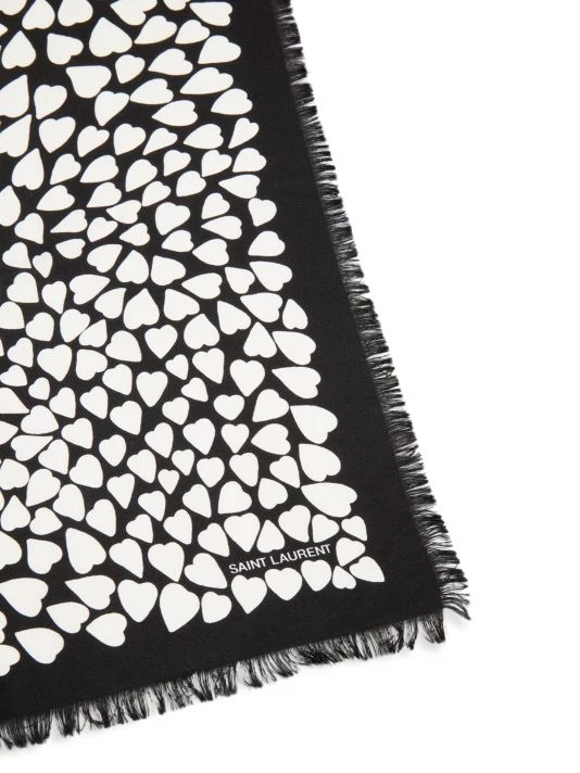 Showcasing a scattered heart print, this Italian-made scarf is composed of fine silk finished with wispy frayed edges.