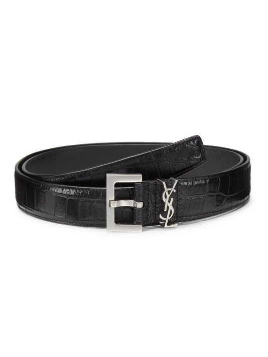 This glossy leather belt is elevated with a textural crocodile-embossed finish.
