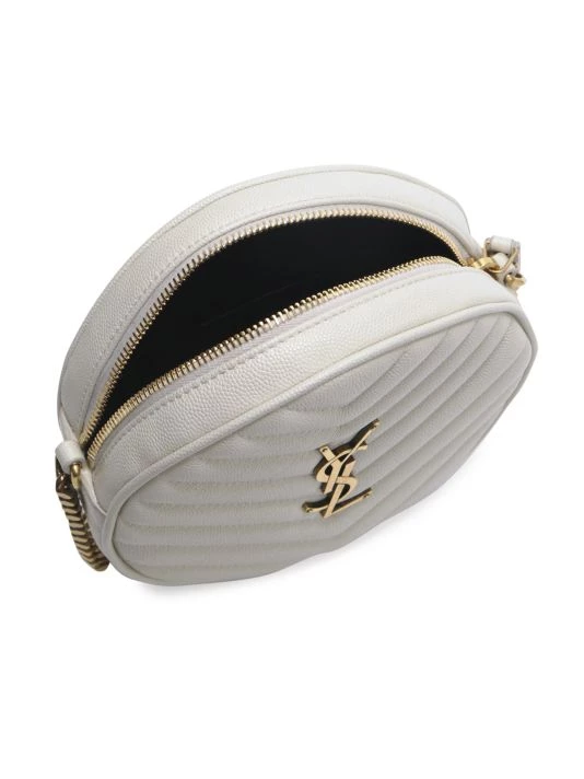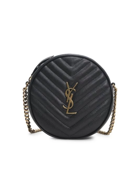 Dramatic matelassé bag styled in the round, with goldtone monogram and curb chain strap.