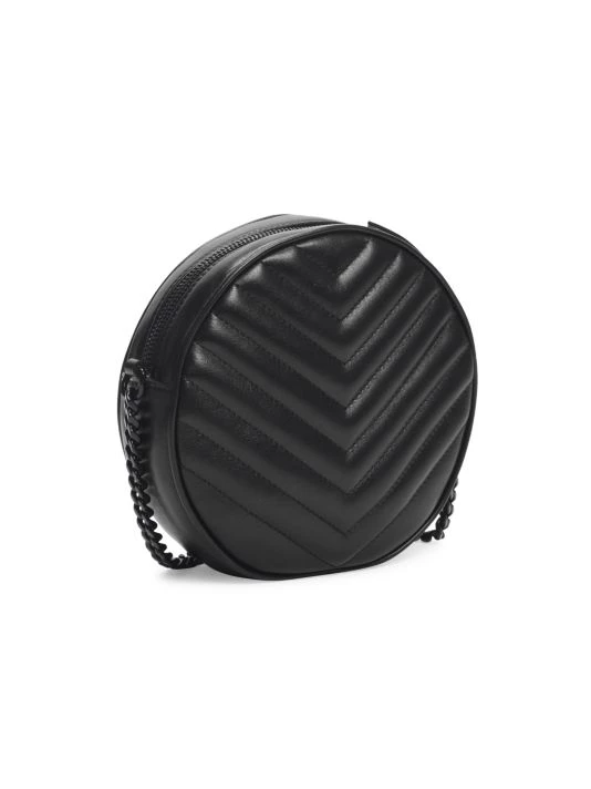 Dramatic matelassé bag styled in the round, with tonal monogram and curb chain strap.