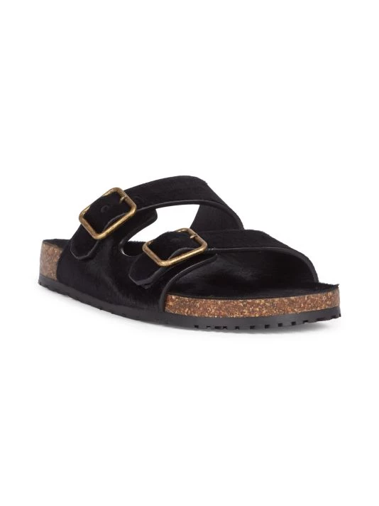 Plush calf hair adds a glam touch to these sporty slip-ons.