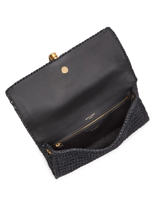 Decorated with the polished YSL-logo hardware and a chain tassel, Saint Laurent’s Kate 99 shoulder bag is made in Italy of woven raffia. This rectangular piece is accompanied by a removable chain strap and a adjustable leather strap.
