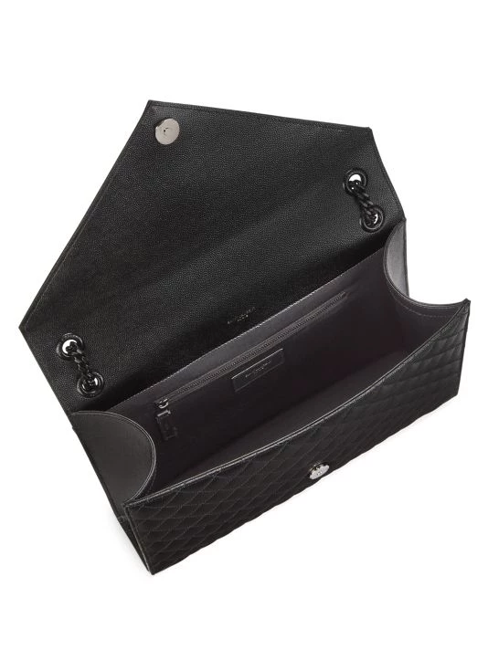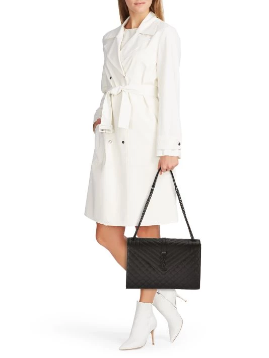 Made in Italy of finely grained leather, Saint Laurent’s satchel boasts a mixture of vertical, chevron, and carré quilted stitching. This piece is highlighted with tonal YSL logo hardware.