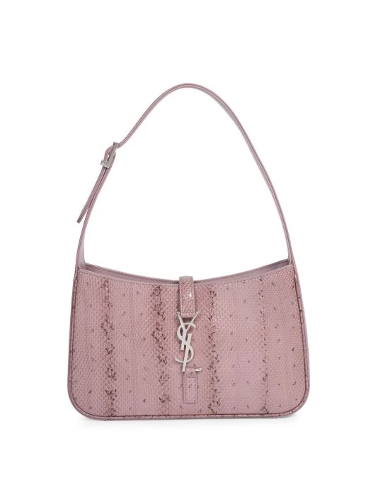 Saint Laurent’s Le 5 à 7 hobo bag is designed in a structured silhouette with slightly curved edges. Styled with signature YSL logo hardware, this luxurious piece is crafted of snakeskin in Italy.