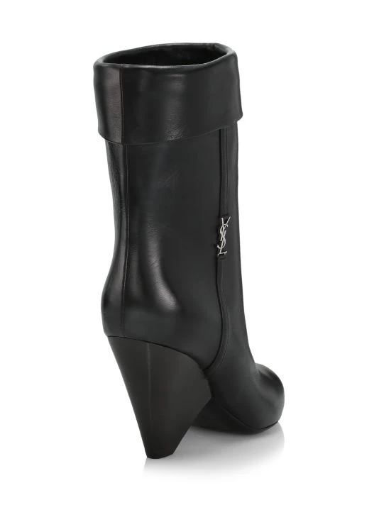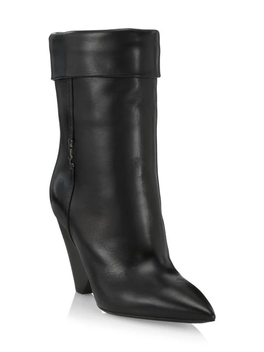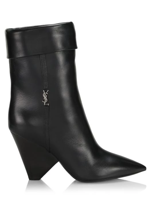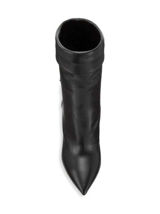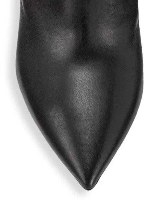 Soft leather boots with eye-catching angular heel and pointed toe.