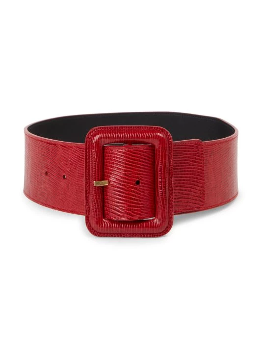 Featuring a wide silhouette, Yves Saint Laurent’s belt is crafted of luxe lizard-embossed leather.