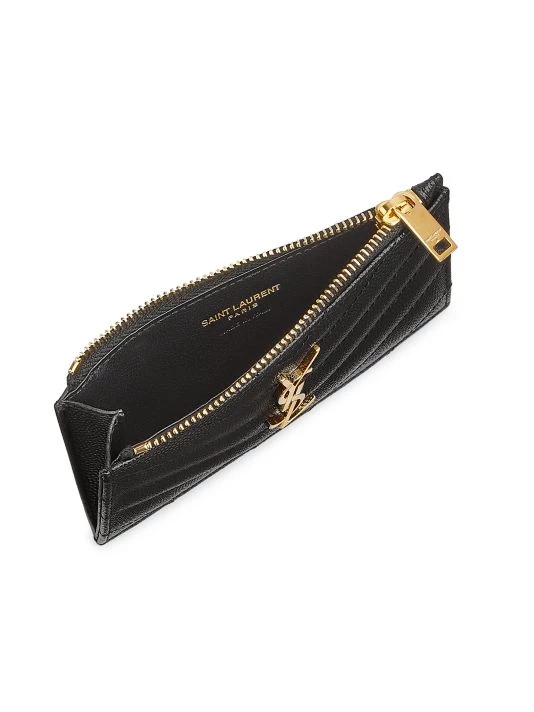 Sleek in a rectangular design, Saint Laurent’s grained leather cardholder flaunts iconic chevron quilting. This piece is elevated with the iconic YSL logo hardware.