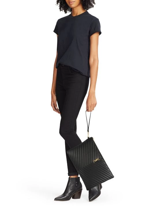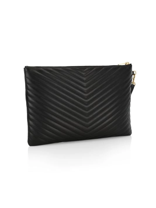 Made in Italy of chevron-quilted leather, Saint Laurent’s slim pouch is punctuated with polished YSL-logo hardware. This piece is accompanied by a removable wristlet for hands-free ease.