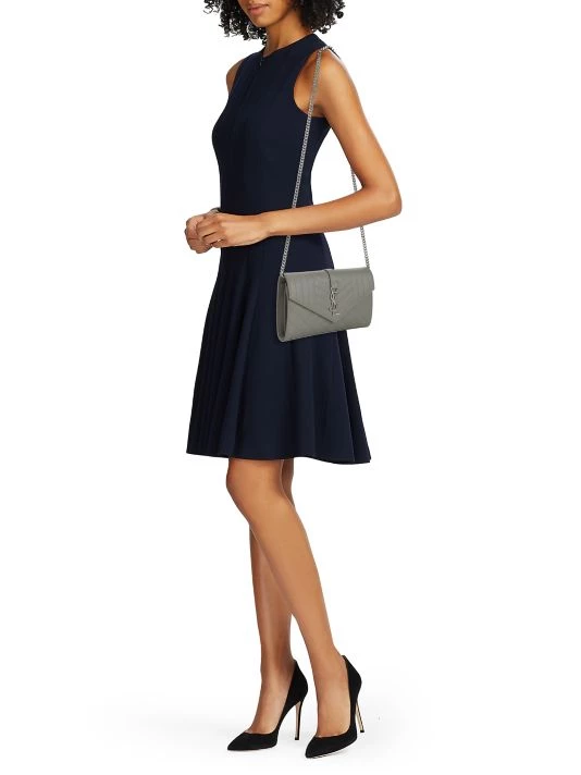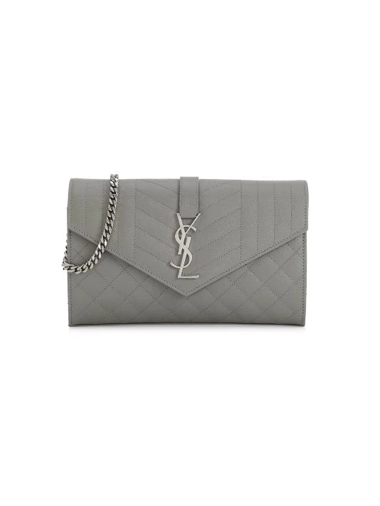 Made in Italy of finely grained leather, Saint Laurent’s envelope wallet boasts a mixture of vertical, chevron, and carré quilted stitching. This piece is highlighted with polished YSL logo hardware.