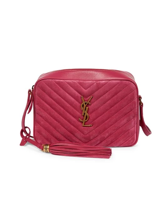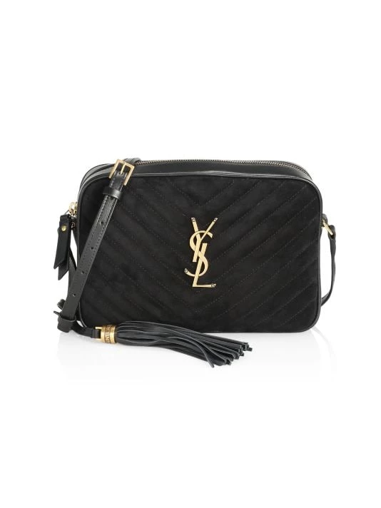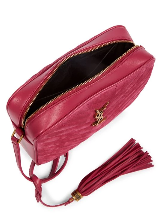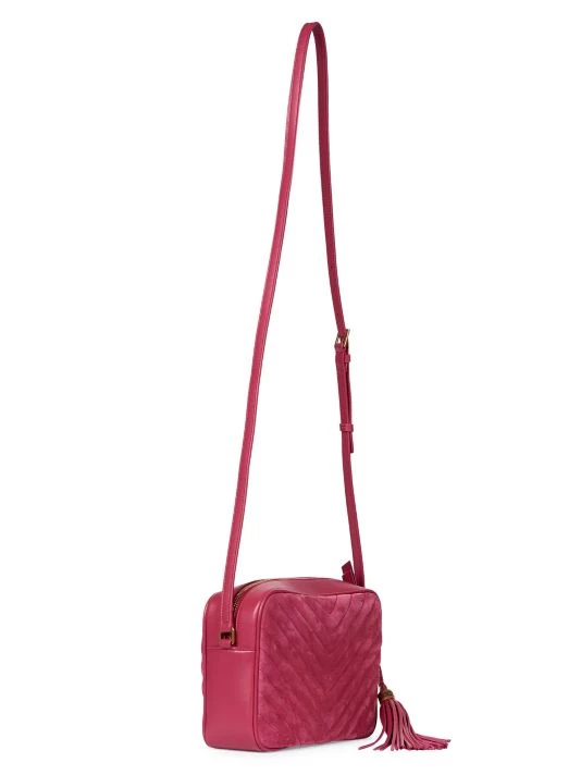 Stitched into a matelassé finish, this suede and leather camera bag is elevated with signature monogram hardware.