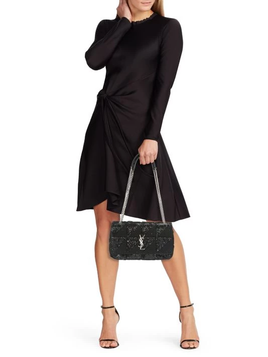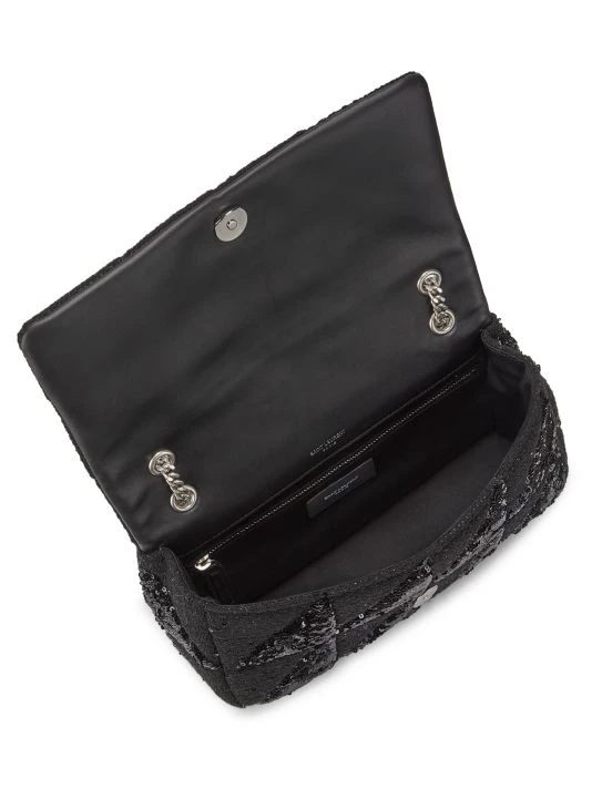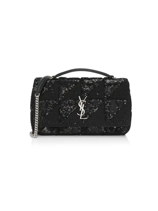 Triangular-shaped sequin panels accented by signature YSL logo hardware completes this iconic shoulder bag.