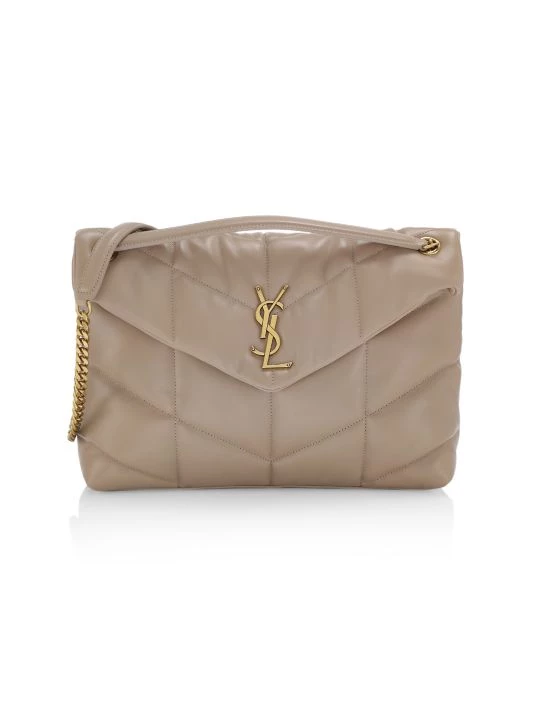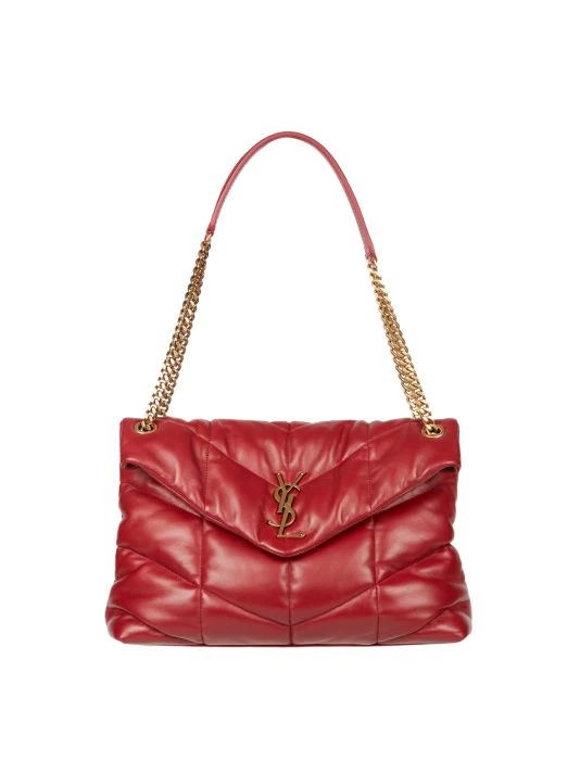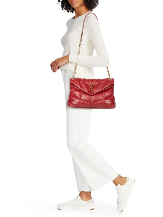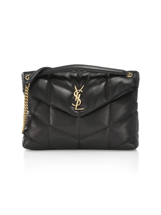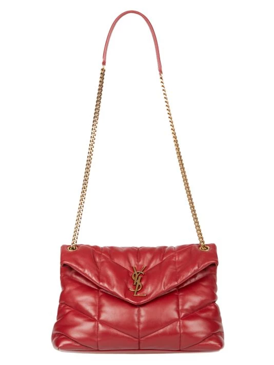 Saint Laurent’s iconic styling is given a modern update with a sporty, puffer-style leather finish.