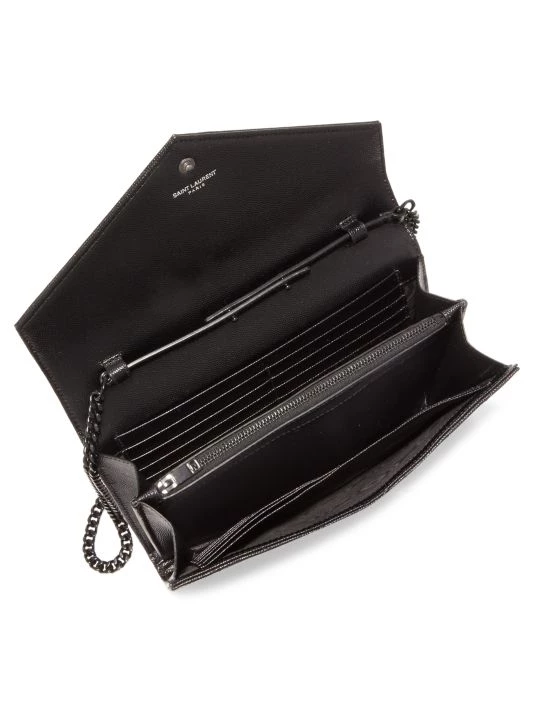 Quilted leather envelope wallet with black hardware.
