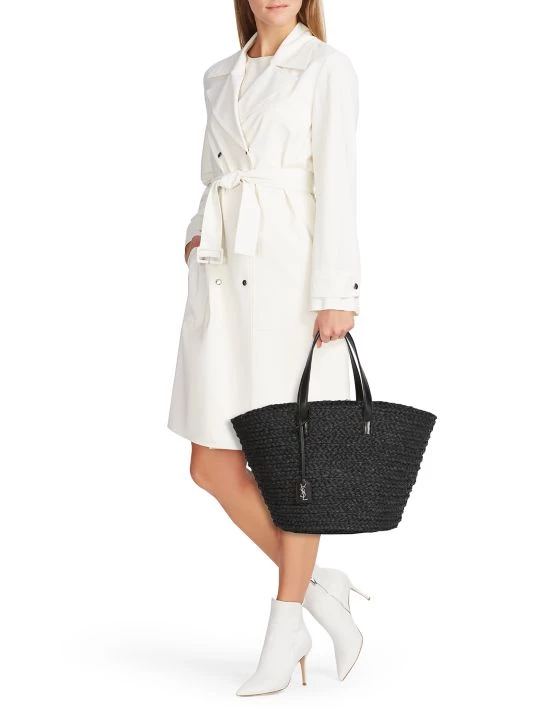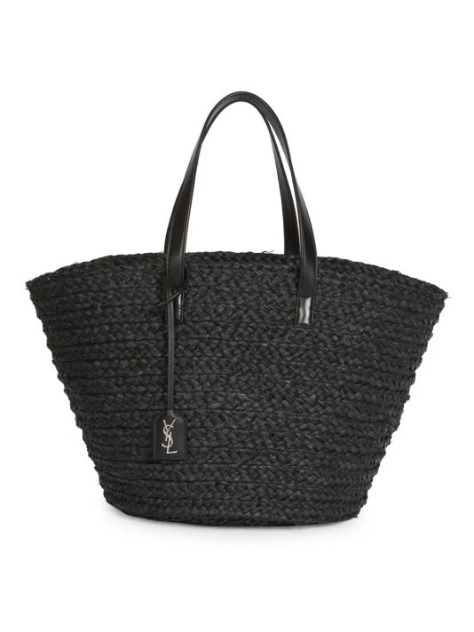 Modern woven straw tote is a breezy summer look.