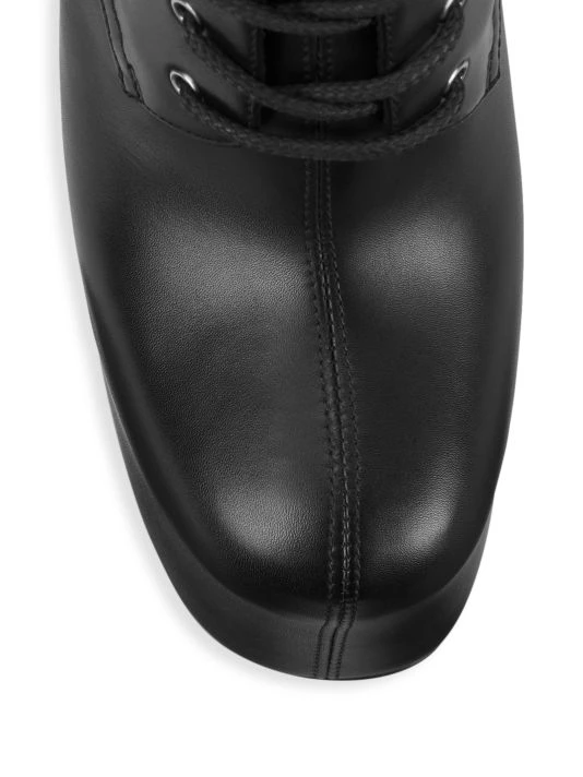 Elevated by a striking platformed block heel, Saint Laurent’s Mina boots are crafted of smooth leather. This Italian-made pair is finished with a metal pull tab at the back.