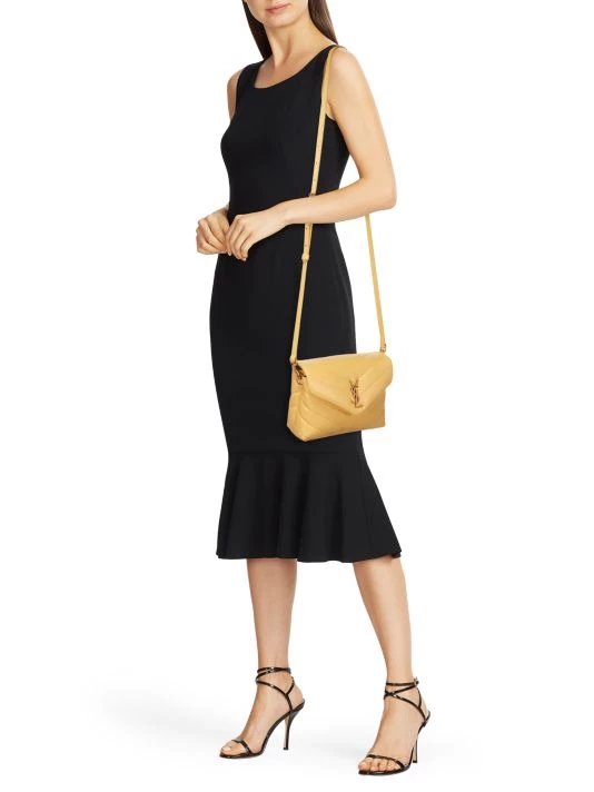 Quilted leather shoulder bag with toy strap, highlighted with signature YSL logo plaque.
