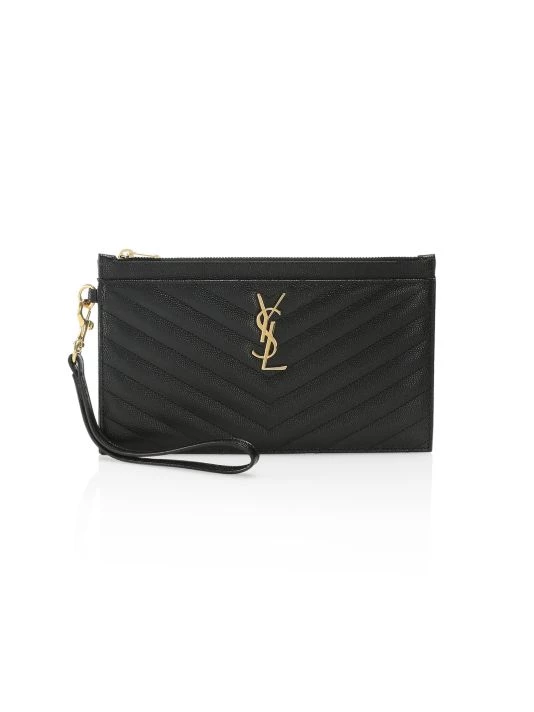 Sleek in a rectangular design, this leather pouch flaunts iconic chevron quilting and is elevated with an iconic insignia at the front.