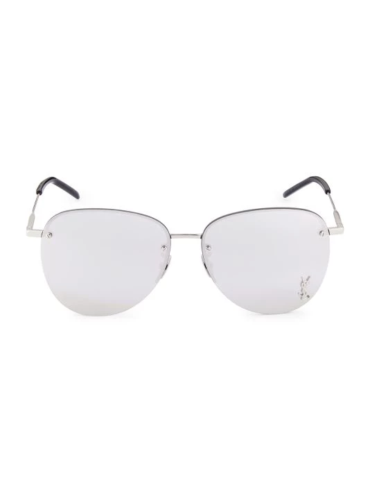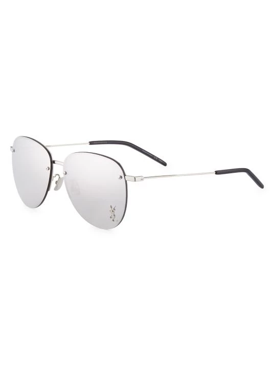 From the Monogram Collection. These half-rim aviator sunglasses feature metal pins and the YSL monogram on the lens.