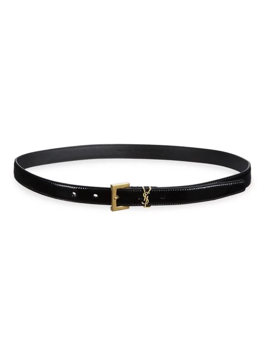 With a polished goldtone logo, this slim patent leather belt completes your look.