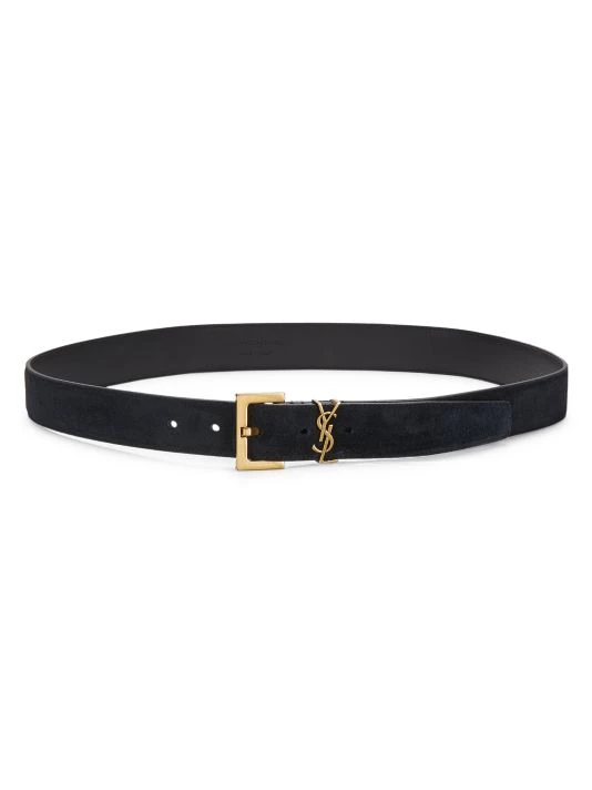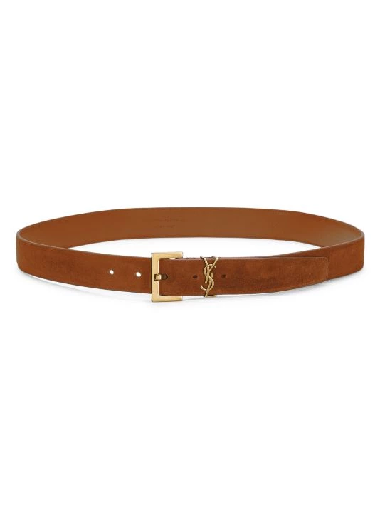 Soft suede contrasts the polished goldtone hardware of this belt.