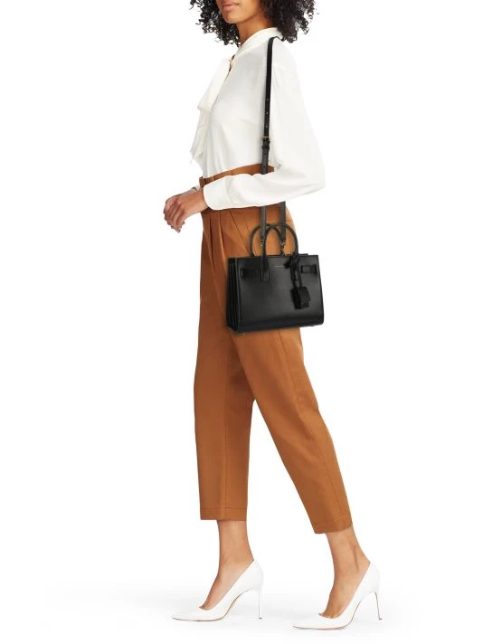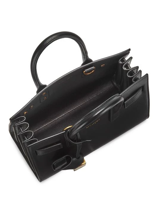 Detailed with an understated foiled logo, Saint Laurent’s Sac De Jour satchel is made of textured calfskin in Italy. This sophisticated silhouette features accordion sides with compression tabs.