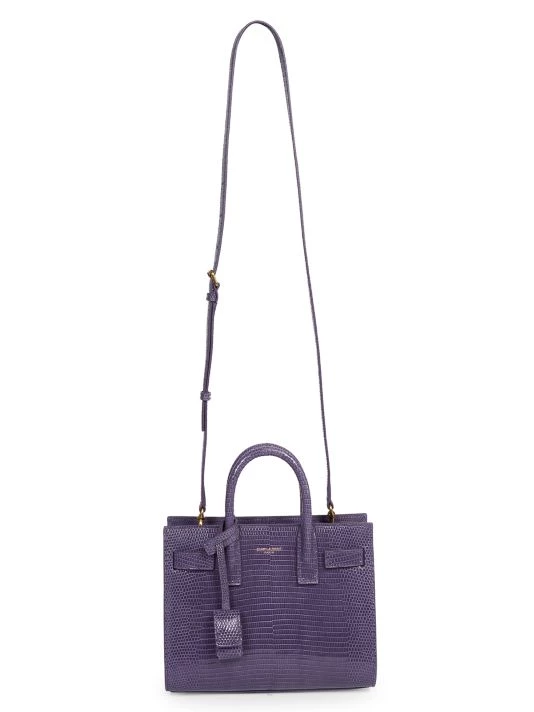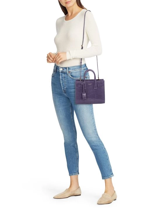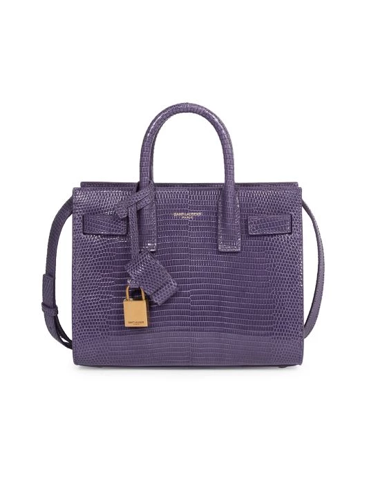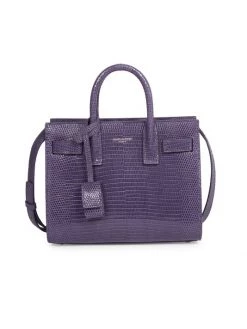 Detailed with an understated foiled logo, Saint Laurent’s Sac De Jour satchel is made of water monitor lizard in Italy. This sophisticated silhouette features accordion sides with compression tabs.