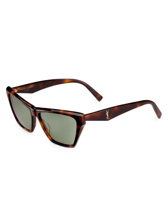 From the New Acetate YSL Collection. Angular cat-eye sunglasses finished with a YSL logo plaque at the temple.