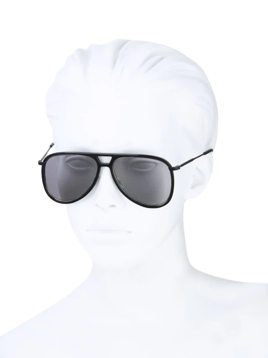 From the New Wave Collection. Pilot shape sunglasses with plastic rims highlighted by thin metal wires.