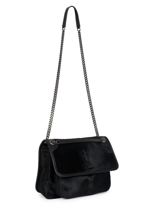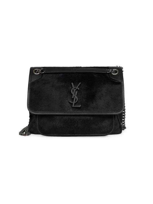 Niki top handle bag featuring vintage-look pony hair design.