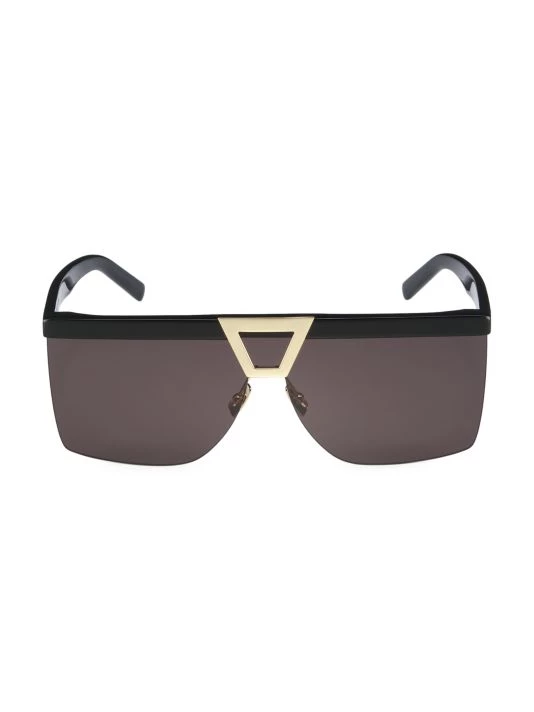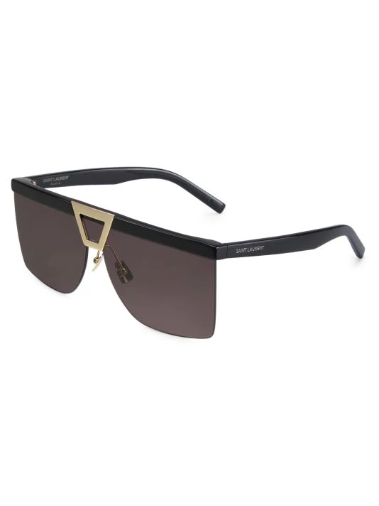Saint Laurent’s Palace sunglasses boast a shield silhouette with a triangular metal insert at the bridge.