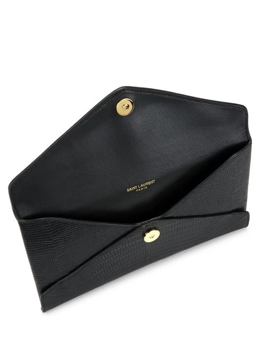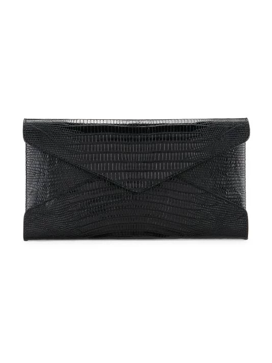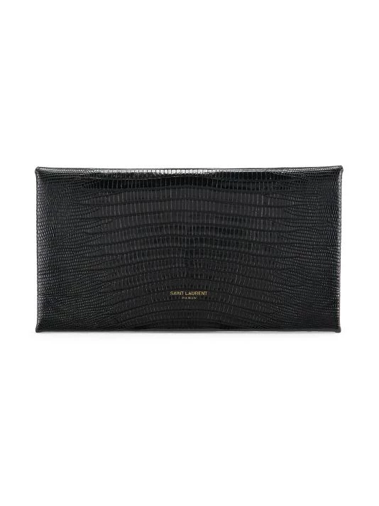 Saint Laurent’s Paloma pochette is crafted of lizard-embossed leather in an envelope silhouette.