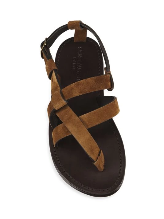 Curved interlocking straps design Saint Laurent’s luxurious Pepe sandals. Made in Italy, this flat pair is fastened with a brushed buckle.