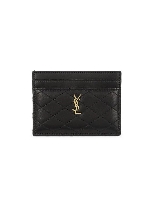 Saint Laurent’s card holder is crafted of quilted leather with a signature monogram logo plaque.
