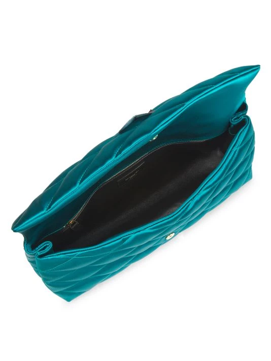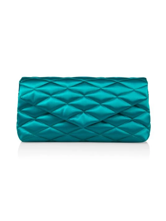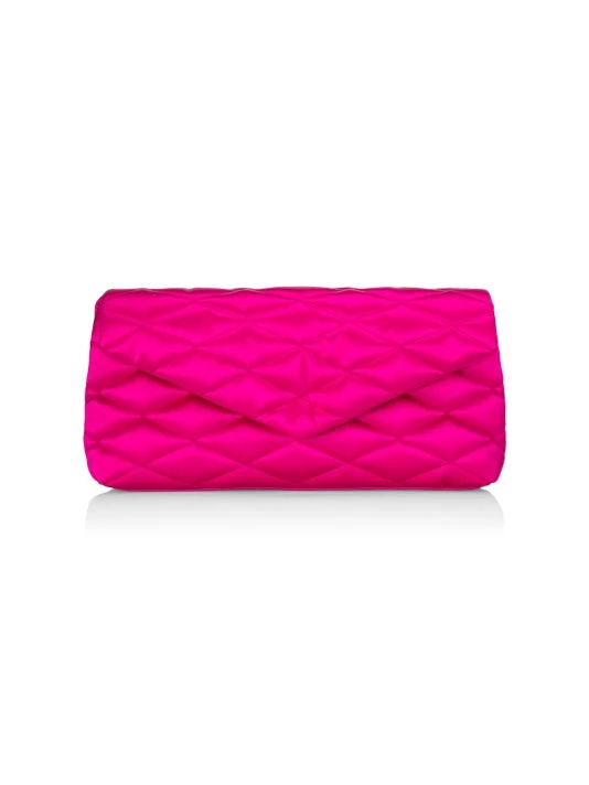 Made in Italy, Saint Laurent’s envelope clutch is crafted of quilted silk satin.